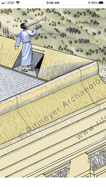 We must remember that the Hebrew Calendar does not function as the Roman one that we in the West, now use. For example, the Hebrew year has 360 days with 30 days in each month and a day starts at 6 pm and ends 24 hours later at 6 pm. In other words, the Jewish Saturday (yom shabbat) begins at 6 pm on Friday and ends at 6 pm on Saturday. Knowing you the way I do, I am sure that you are thinking: How did anyone know when the Sabbath would begin or end when there were no clocks or watches? Did people randomly choose when to start the day, or was there a system of timing uniformity when everyone knew what time it was? Well, congratulations! That's good thinking on your part! And Yes, the temple priests had established a system for announcing times of the day. This timing arrangement was facilitated with the use of trumpet blasts.
